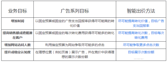 谷歌的智能出價(jià)策略包括目標每次轉化費用,目標廣告支出回報率,盡可能提高轉化次數和智能點(diǎn)擊付費等,你可以根據自己的業(yè)務(wù)目標來(lái)使用不同的智能出價(jià)策略進(jìn)行賬戶(hù)的優(yōu)化。